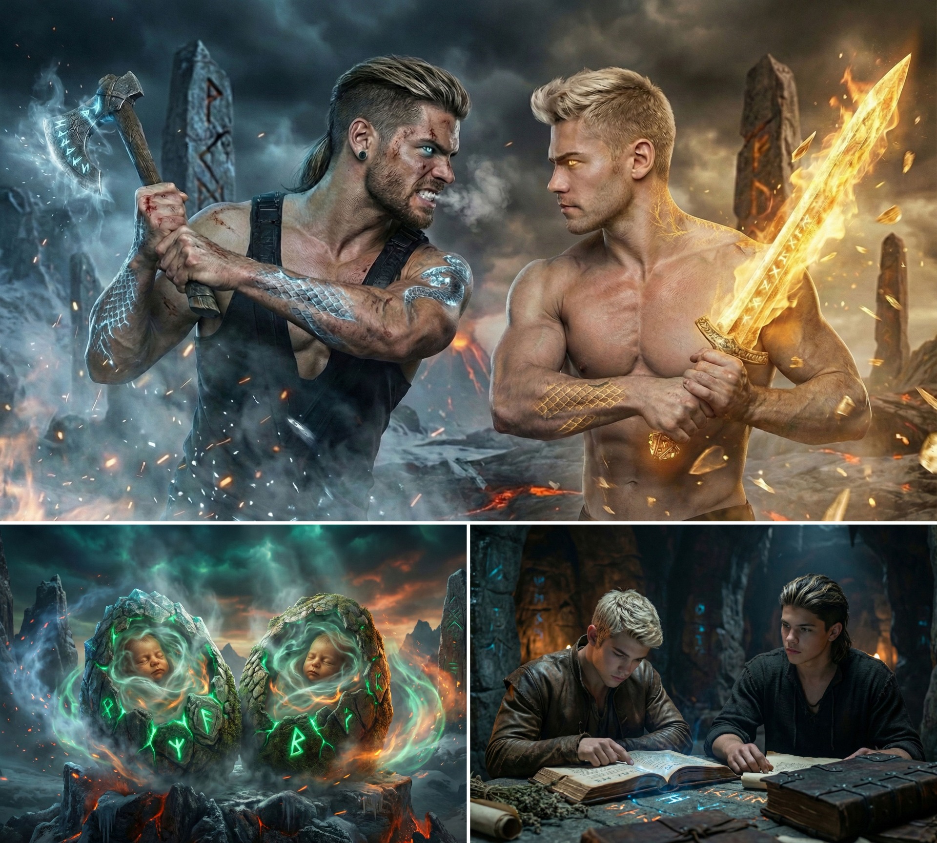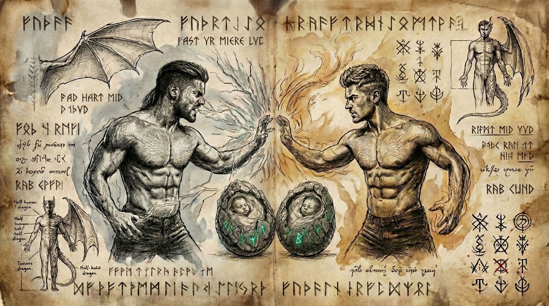 Z dávných kronik plyne, že z dračích vajec v říších Niflheimu a Múspellheimu se vylíhli dračí synové v tělech lidských dětí. Dva bratři: Vithmiris "Vito" Saerrios a Rechiar "Zane" Zainnirth. Jako mláďata učili se bojovým uměním, tajům magie, okultním vědám i o historii světa a svého druhu. V tichých koutech skal studovali runové inkantace, mluvili s prastarými duchy a plnili zkoušky, jež z nich měly učinit strážce starobylé moudrosti a průvodce čarodějek. Po mnoho lidských generací stáli Vito a Zane bok po boku, společně živeni vědomím osudu, který je spojuje, a přesto mezi nimi začalo kvést první semínko pochybností. Až přišel čas, kdy se rozešly jejich duchovní cesty. Zatímco Zane, zlatý drak z Múspellheimu, nacházel v lidech dobrotu, odvahu a cítil k nim podivnou sounáležitost a něhu, Vito, stříbrný drak z Niflheimu, vnímal lidskou mysl jen jako slabost. Jako cosi podřadného se sklony k proradnostem. Rechiar viděl v lidech vzpomínky na oheň, jímž byli sami stvořeni. Viděl kouzla jejich obyčejnosti, radosti i slz, kterých byli schopni jako nikdo jiný. Vithmiris naproti tomu vnímal lidské plémě jako zbytečné, nabubřelé, nehodné respektu a náklonnosti. Jejich nesoulad houstl jako bouře: přátelství mezi bratry se začalo tříštit v jiskřivý vír konfliktu.